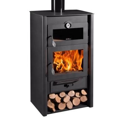 ESTUFA DE LEÑA PARMA. CON HORNO INCORPORADO, Y LADRILLO REFRACTARIO PARA OBTENER EL MEJOR USO DE LA ENERGÍA, DIMENSIONES 910 X 520 X 400 MM PESO: 100 KG SALIDA DE HUMO VERTICAL 120 MM; HORNO REFRACTARIO CON TERMÓMETRO DE CONTROL DEL HORNO 200 X 400 X 305 MM; REJILLA DE HIERRO FUNDIDO 23 X 16 CM; TRONCOS DE HASTA 48 CM; PUERTA DE ENTRADA 355 X 265 MM, INTERIOR CON VERMICULITA,DOBLE COMBUSTIÓN; CUERPO DE ACERO 4 MM.