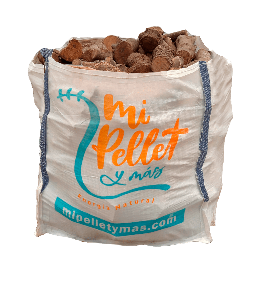 La leña se encuentra cortada con una medida de unos 25/30 cm. Y se presenta en sacas paletizadas (1 metro cúbico), para un mejor manejo y transporte.